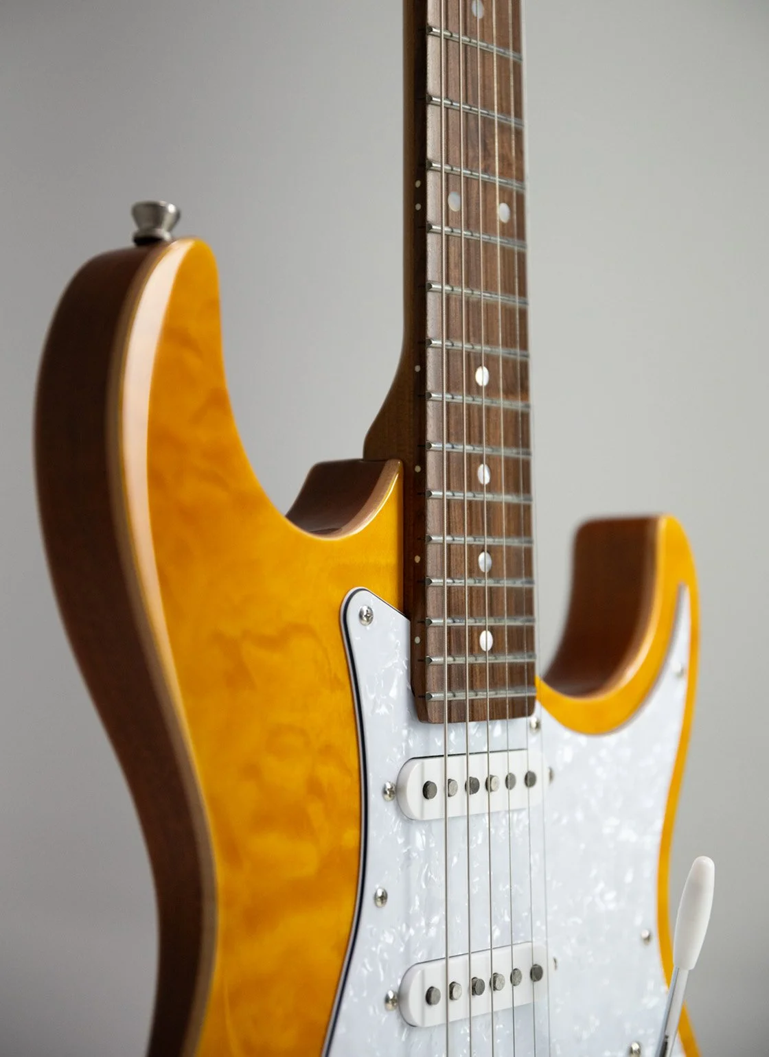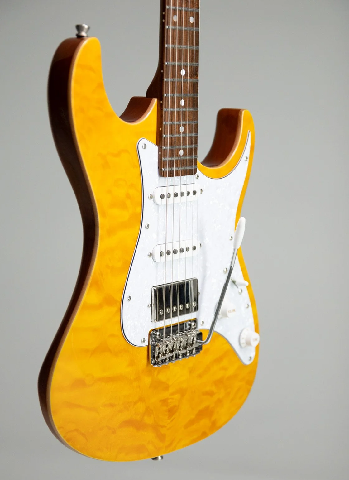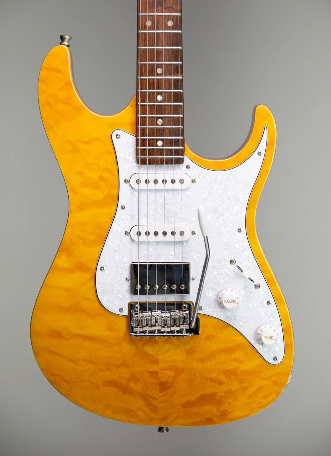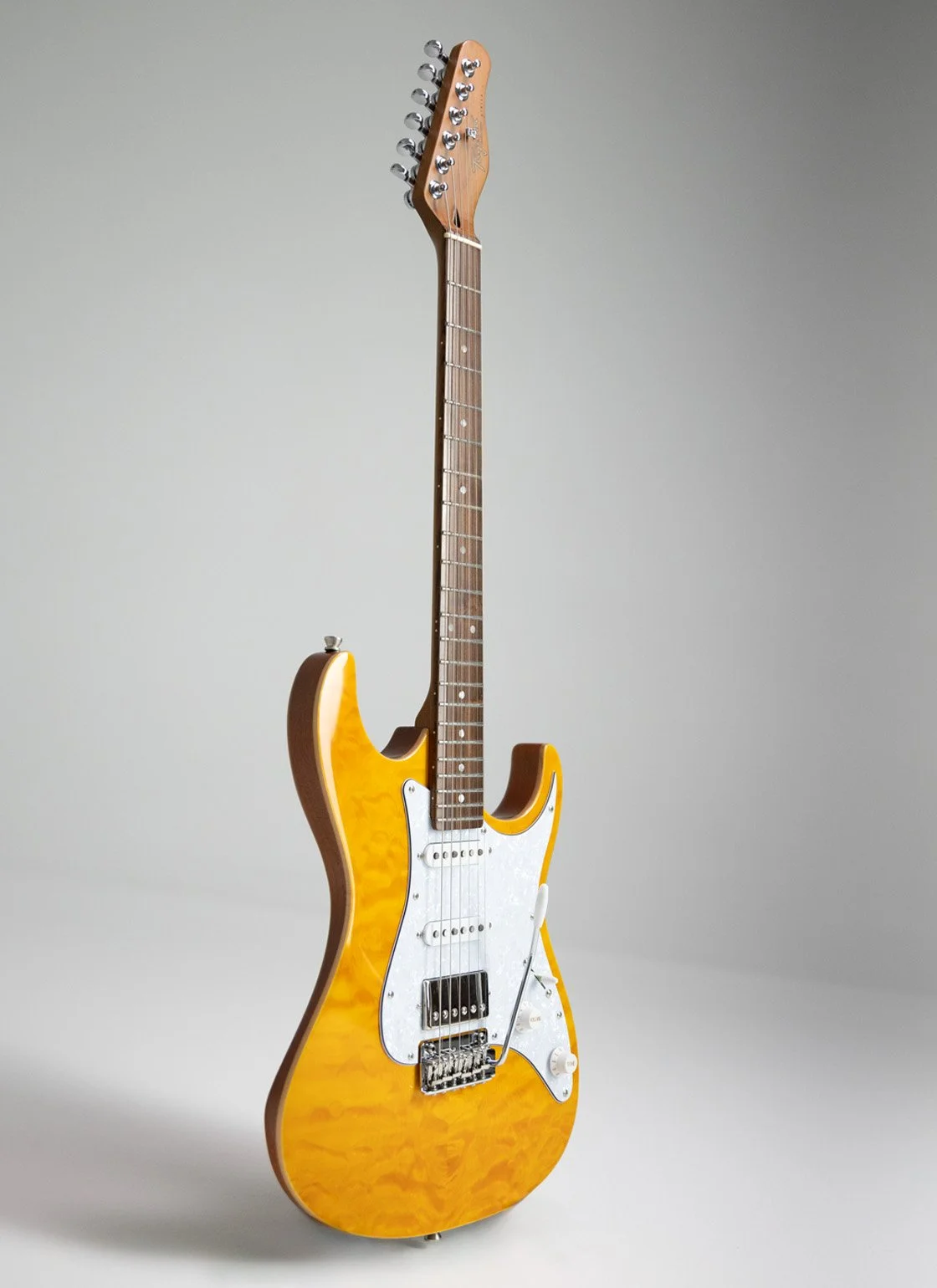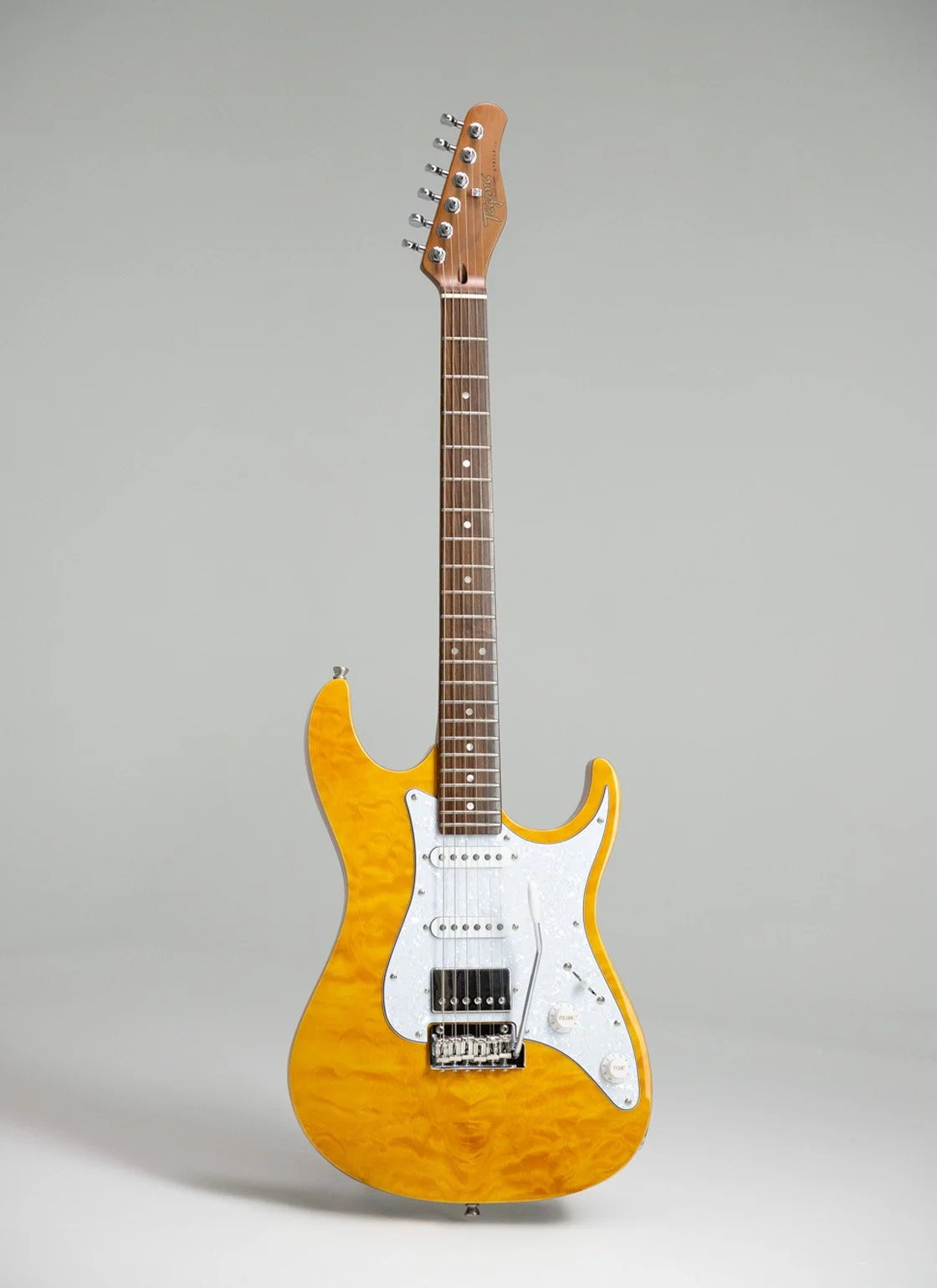 All Content › Tagima TG 540 Image 1 of 26 Image 2 of 26 Image 3 of 26 Image 4 of 26 Image 5 of 26 Image 6 of 26 Image 7 of 26 Image 8 of 26 Image 9 of 26 Image 10 of 26 Image 11 of 26 Image 12 of 26 Image 13 of 26 Image 14 of 26 Image 15 of 26 Image 16 of 26 Image 17 of 26 Image 18 of 26 Image 19 of 26 Image 20 of 26 Image 21 of 26 Image 22 of 26 Image 23 of 26 Image 24 of 26 Image 25 of 26 Image 26 of 26 Tagima TG 540 $289.99 Color: Black with DF Black with Maple Metallic Red with DF Metallic Red with Maple Sunburst with Maple Surf Green with DF Surf Green with Maple Olympic White with DF Olympic White with Maple Lake Placid Blue with DF Lake Placid Blue with Maple Get notified by email when this product is in stock. Quantity: Add to Cart Added! Body: Crafted from smooth and lightweight basswood, this guitar offers a balanced tone and comfortable feel.Neck: Made from durable maple, providing stability and a bright sonic character.Fretboard: Also maple, featuring a 25.5" scale length with 22 frets for plenty of playing versatility.Nut Width: Measures 42mm, designed for comfortable finger positioning.Pickups: Equipped with one powerful humbucker at the bridge position accompanied by two classic single coils for a wide range of tonal options.Electronics: Includes a standard 5-way selector switch, one master volume control, and two tone knobs to shape your sound effortlessly.Bridge: Vintage style chrome floating tremolo adds expressive vibrato capabilities.Tuners: Tagima sealed tuners ensure smooth and stable tuning.Colors: Available in striking finishes—Black, Surf Green, Vintage White, Sunburst, Lake Placid Blue, and Metallic Red.Pickguard: Choose between a clean white or a classic tortoise shell pickguard to match your style. Body: Crafted from smooth and lightweight basswood, this guitar offers a balanced tone and comfortable feel.Neck: Made from durable maple, providing stability and a bright sonic character.Fretboard: Also maple, featuring a 25.5" scale length with 22 frets for plenty of playing versatility.Nut Width: Measures 42mm, designed for comfortable finger positioning.Pickups: Equipped with one powerful humbucker at the bridge position accompanied by two classic single coils for a wide range of tonal options.Electronics: Includes a standard 5-way selector switch, one master volume control, and two tone knobs to shape your sound effortlessly.Bridge: Vintage style chrome floating tremolo adds expressive vibrato capabilities.Tuners: Tagima sealed tuners ensure smooth and stable tuning.Colors: Available in striking finishes—Black, Surf Green, Vintage White, Sunburst, Lake Placid Blue, and Metallic Red.Pickguard: Choose between a clean white or a classic tortoise shell pickguard to match your style. Reviews Reviewer Name Review Date Star Rating Description Posted on Etsy Product Show More You Might Also Like Quick View Tagima STELLA DW $599.00 Quick View TAGIMA SIXMART $329.00 Quick View Tagima TW 73 $349.99 Quick View Tagima NEW ENGLAND EQ $269.99 Quick View Tagima ALMACH FL $599.99
